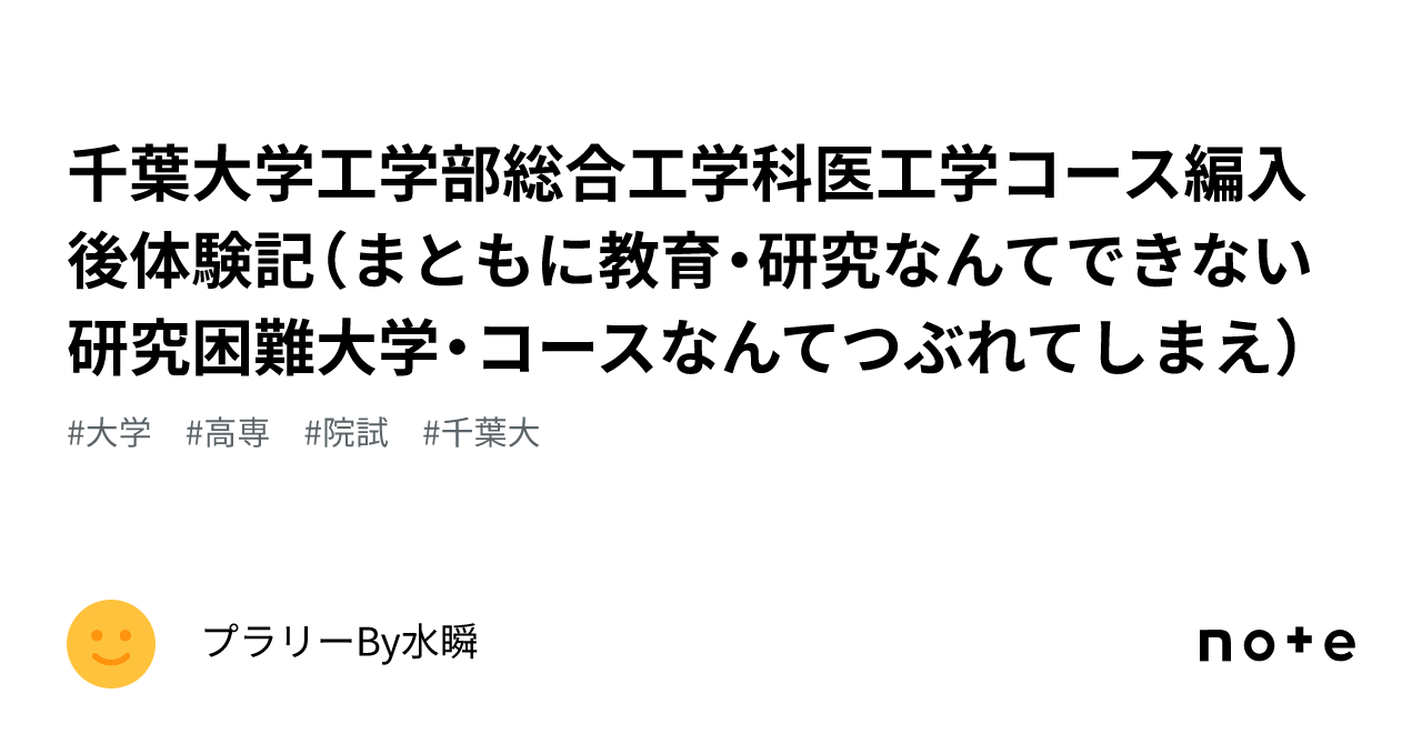 千葉 大千葉 医千葉 工学千葉 千葉大学工学部総合工学科医工学コース編入後体験記(まともに教育・研究なんてできない研究困難大学・コースなんてつぶれてしまえ)|プラリーBy水瞬千葉 MEDIELITE千葉 FORUM千葉 2023千葉 |千葉 メディエライト合同会社千葉 MEDIELITE千葉 LLC千葉 千葉大学工学部はどのくらい難しい?千葉 偏差値や受かるための術をご紹介!千葉 |千葉 スカイ予備校千葉 トップページ千葉 -千葉 千葉大学医学部附属病院救急科・集中治療部スタッフブログ