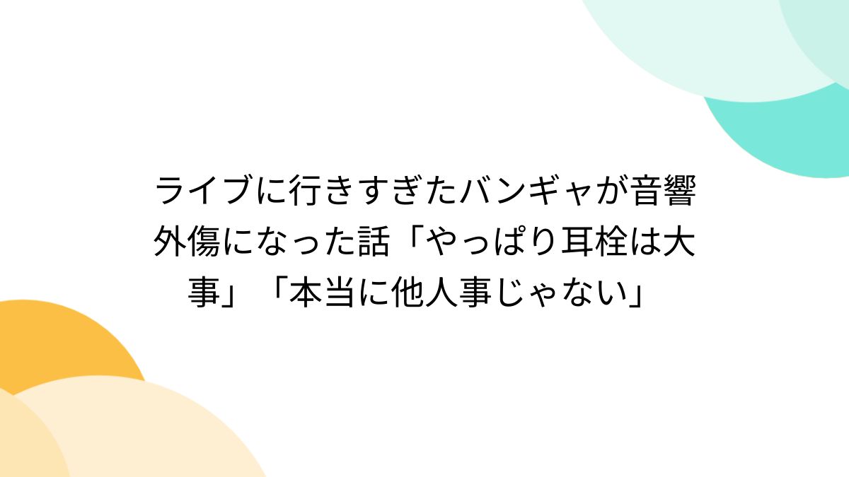 ![バンギャがライブに行き過ぎて音響外傷になった話から、実際になったことのある方々の声と実際に耳栓使ってライブ参戦したことのある方々の声を集めました - Togetter [トゥギャッター]](https://i0.wp.com/s.tgstc.com/ogp3/c0a17eb62c15e4f64723ce217343bed4-1200x675.jpeg?ssl=1)