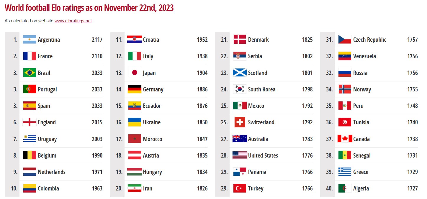 elo レーティングelo サッカーelo FIFAランクよりも正確?elo “Eloレーティング”では日本代表は「14位」elo elo ベルギーやモロッコよりも上|theWORLD(ザ・ワールド)|世界のあらゆるスポーツを楽しもう!elo イロレーティングはFIFAランキングとどう違う?日本代表は14位(2025年4月7日)|BIGLOBEニュースelo 確率計算だけでカタールW杯優勝国を予想するelo -elo HAKUTAIelo Techelo Noteselo 日本のGS突破確率は41%!?FIFAランキングが予測するカタールW杯の行方elo -elo footballistaelo |elo フットボリスタelo イロレーティングの計算式とは?中学生も理解できるよう徹底解説!